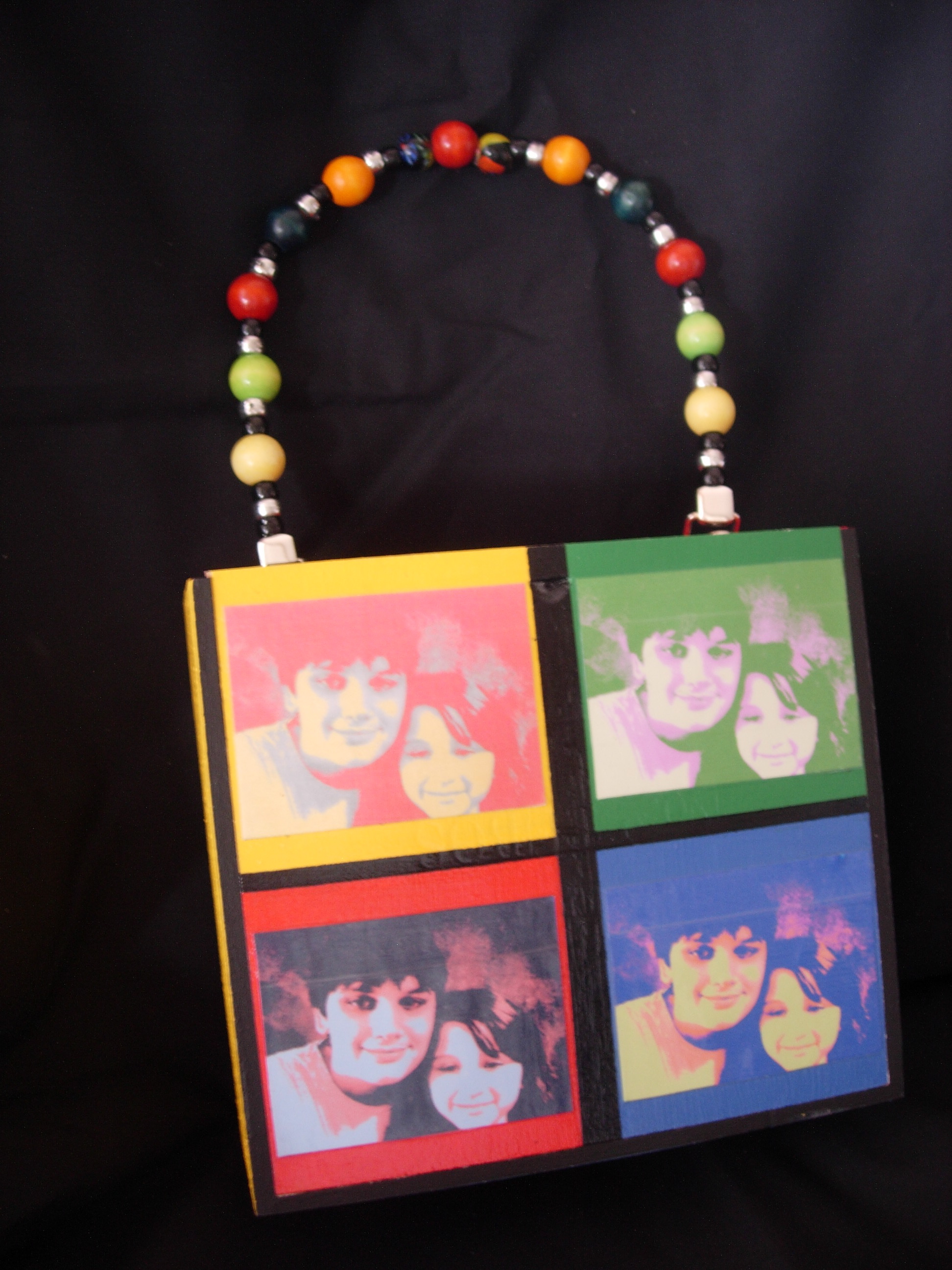 Images of my children Dagan and Bronwyn mixed media art handbag